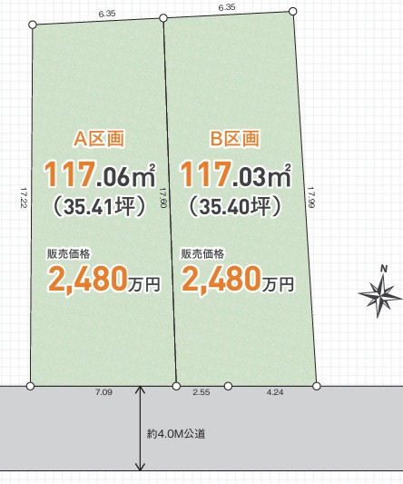 | 土地面積 | 117.03㎡~117.06㎡m² | 土地面積計測方式 | 公簿 |